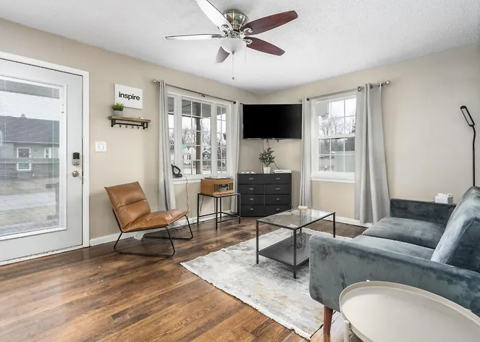 Charm City Hideout 2Bdr And Basement es un refugio ideal que combina comodidad y estilo a tan solo 25 km de Mount Comfort. Este espacio es perfecto tanto para familias como para grupos de amigos que buscan disfrutar de la vibrante cultura de Indianápolis. La decoración moderna y acogedora se suma a la experiencia única que ofrece este lugar, donde cada rincón está diseñado para brindarte una estancia memorable.